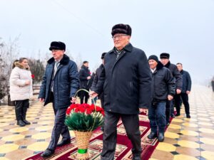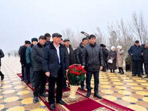 Жиналғандар ескерткіш алдына гүл шоқтарын қойып, ерлікпен опат болған жауынгерлерді бір минуттық үнсіздікпен еске алды.