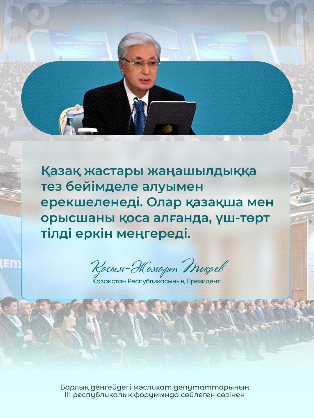 Share Қазақ жастары жаңашылдыққа тез бейімделе алуымен ерекшеленеді.Олар қазақша мен орысшаны қоса алғанда, ұщ төрт тілді еркін меңгереді. 4 Share