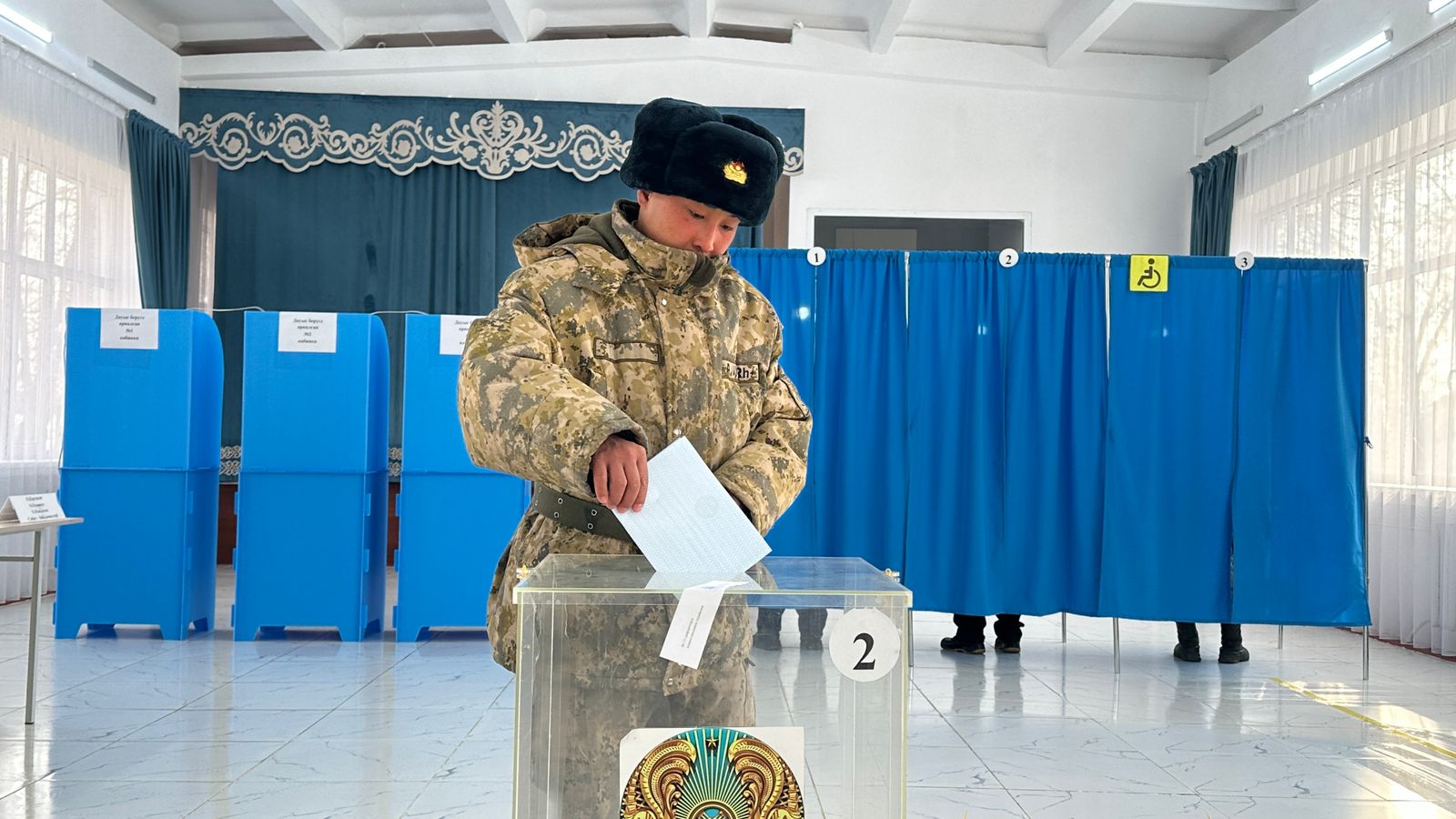 Жасөркен шекара заставасының әскери қызметкерлері №148 референдум учаскесіне келіп, өз дауыстарын берді.