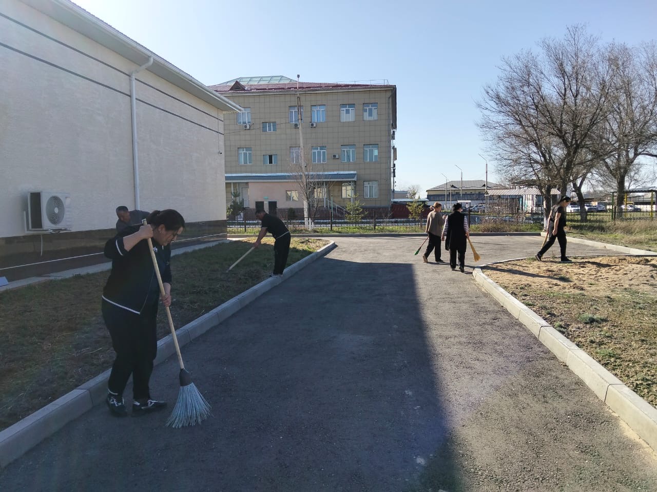 Шара барысында қызметкерлер өз аумақтарын ретке келтіріп, ғимарат айналасын қоқыстан тазартты. Сонымен қатар ағаштарды бұтап, талдарды әктеп, көгалдандыру жұмыстарына да назар аударды.