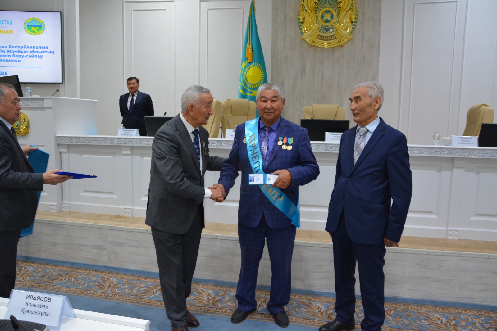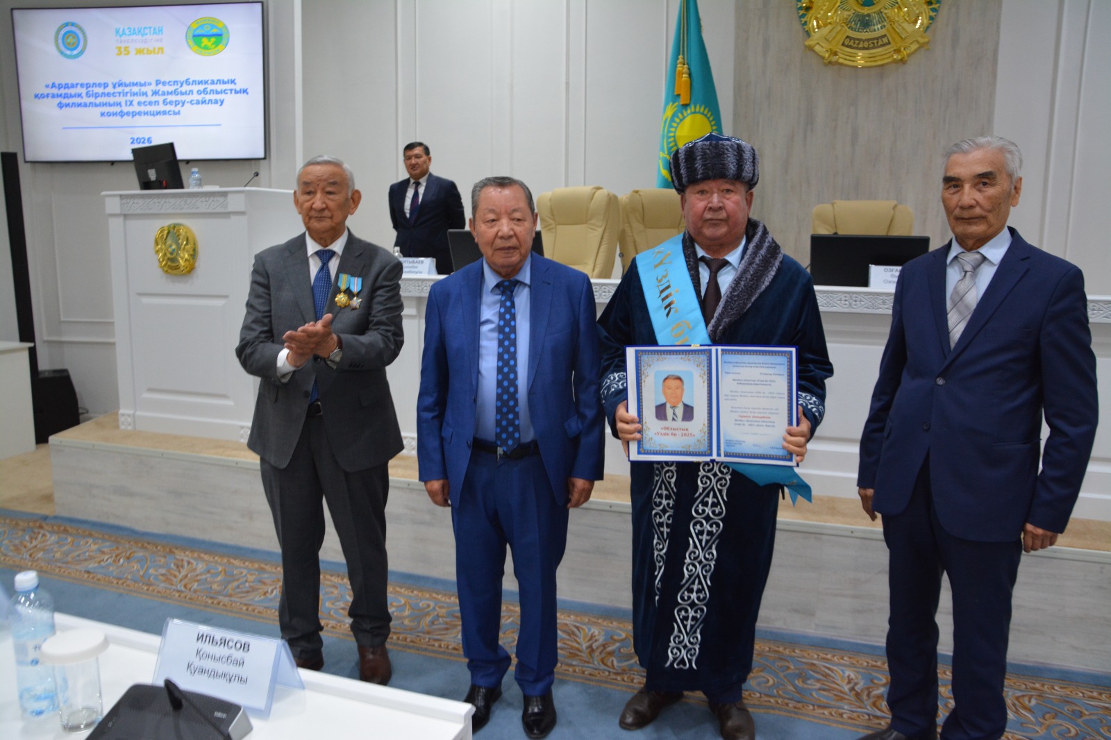 Конференция соңында ел дамуына елеулі үлес қосып жүрген бірқатар ардагерлер салтанатты түрде марапатталды. Атап айтқанда, Батырбек Саршаев 2025 жылдың қорытындысы бойынша «Жамбыл облысының Үздік биі» атанып, жоғары марапатқа ие болды. Сондай-ақ, Сембек Пірімқұловқа «Жамбыл облысының Құрметті ардагері» төсбелгісі табысталды.